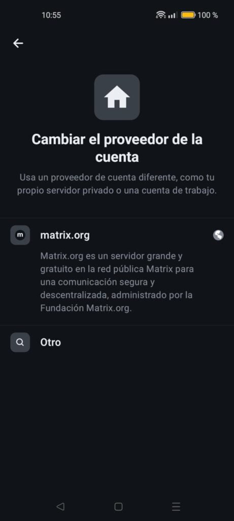 Al desplegarse sobre la red Matrix, se requiere una cuenta en ella para utilizar Element. El problema es que en la versión Element X y a fecha de hoy, no puede crearse desde la misma aplicación. Si ya dispones de una cuenta en Matrix y recuerdas la frase de recuperación no hay problema, caso contrario, lo más sencillo es instalar la versión Element y crearte una cuenta desde ella. Posteriormente, con los datos de usuario y frase de recuperación, podrás validarte en Element X. Algo enrevesado pero es lo que hay en estos momentos.