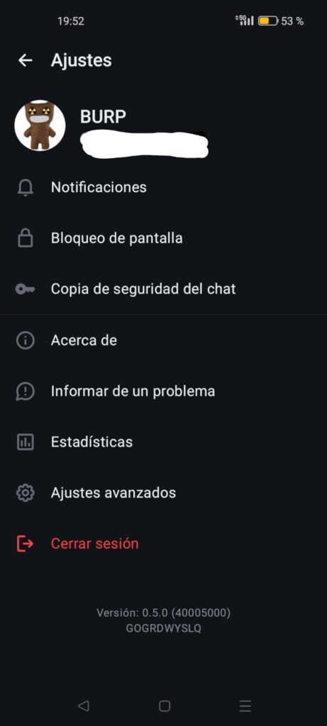 - Copia de seguridad del Chat. Imprescindible si no queremos perder el historial de mensajes al cerrar sesión o iniciar una nueva en otro dispositivo.